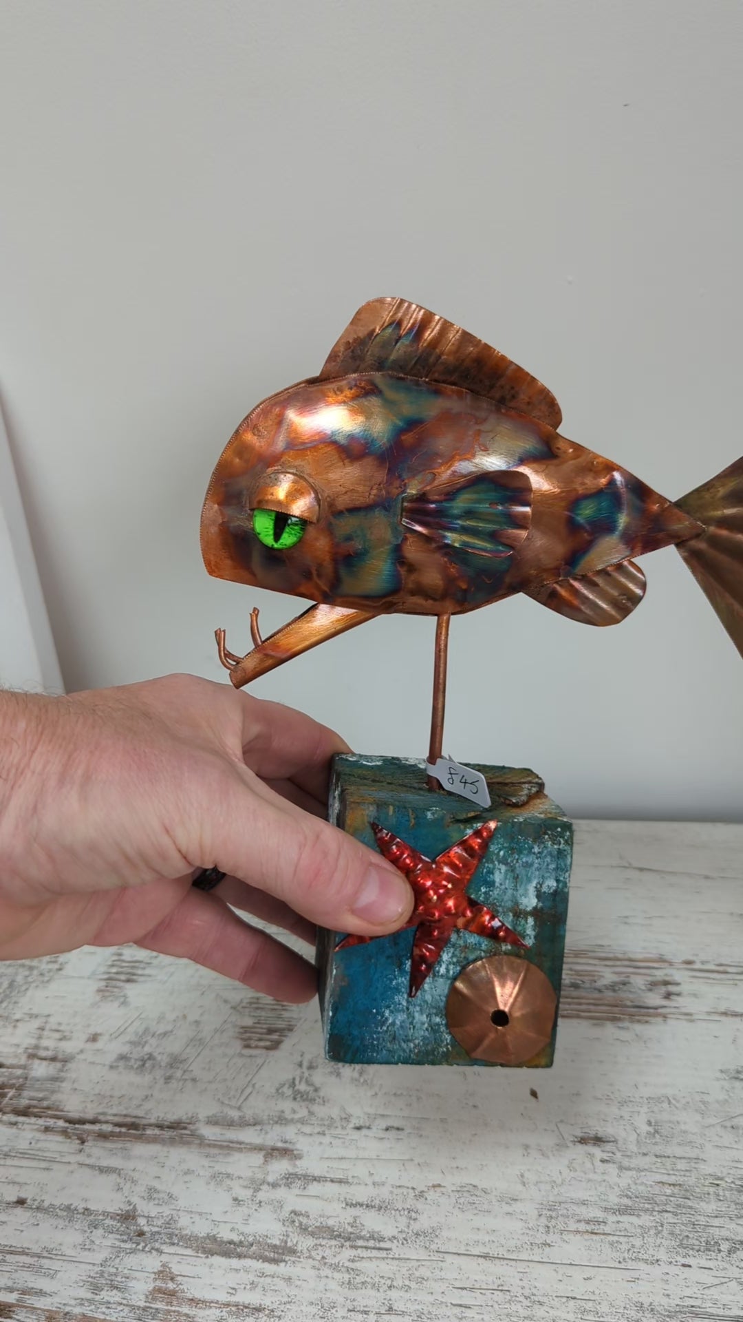 Funky copper fish sculpture