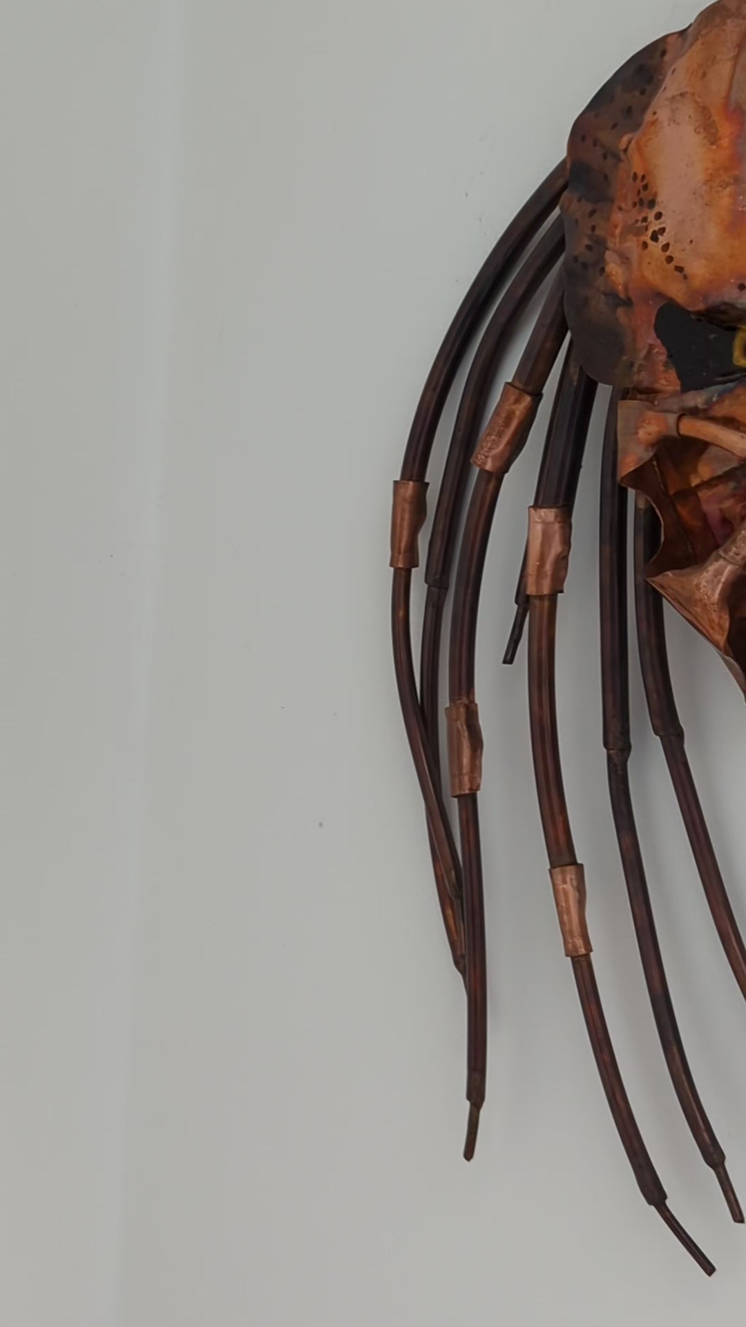 Unleash a bold and striking statement in your space with this handcrafted copper Predator wall hanging sculpture. Designed with meticulous detail, this piece showcases the iconic Predator visage, brought to life with a vivid flame-coloured finish achieved through expert heat treatment. A protective lacquer coating enhances its rich hues while safeguarding it against wear and tarnish.